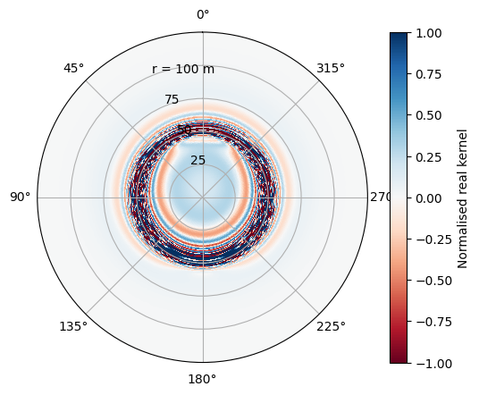 We can explore the kernel a bit more by looking at depth slices, showing how sensitivity even at a constant depth can change with lateral position